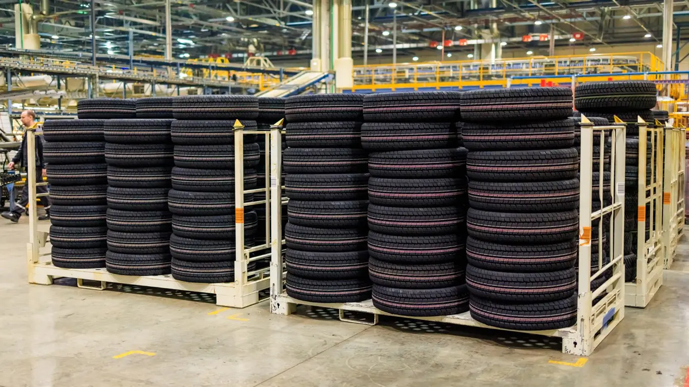 Сортировка и идентификация на заводе — каждая полоса может означать определённую модель или серию шин, что помогает рабочим на заводе правильно сортировать и распределять продукцию.